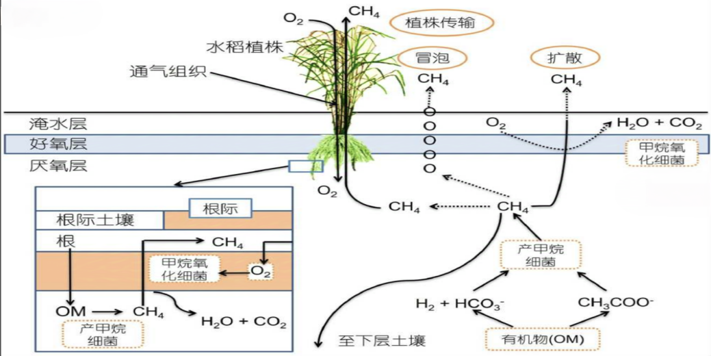 稻田甲烷产生、氧化、排放过程(图片来源|科学通报)