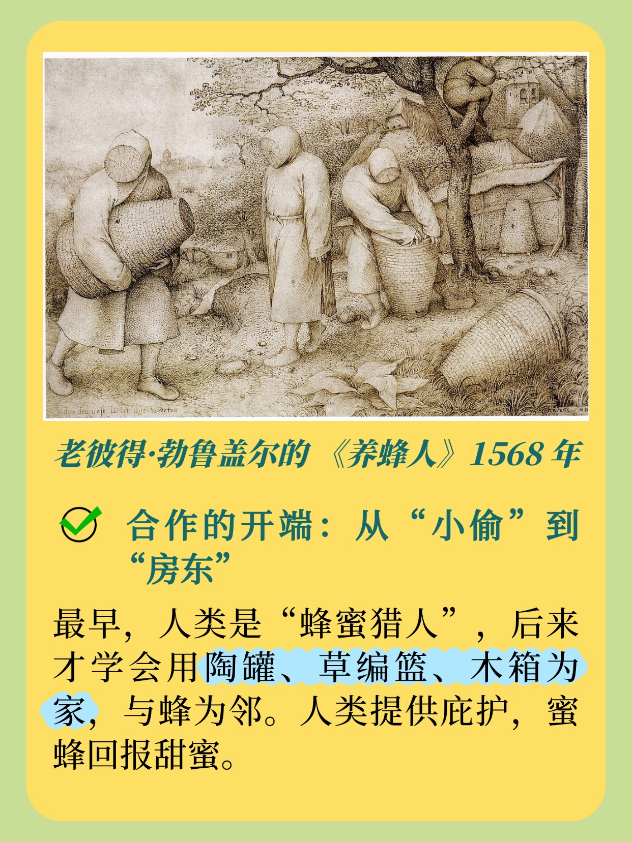 后来,古人学会用陶罐、草篮、木箱为它们安家,才开启了养蜂史。