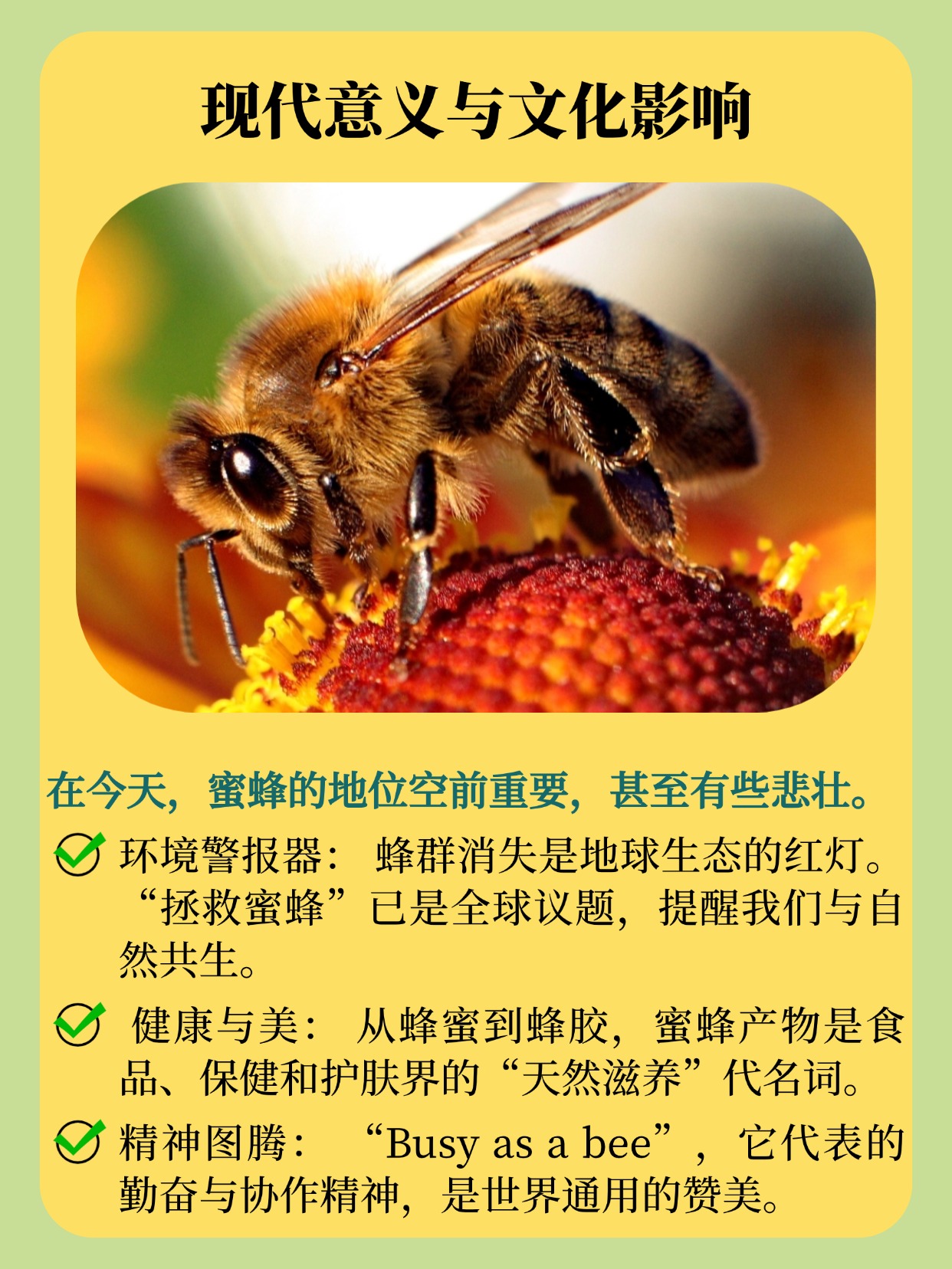 【?】 文化象征:全世界都在用“像蜜蜂一样勤劳”来夸奖努力和团队精神。