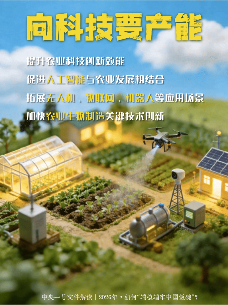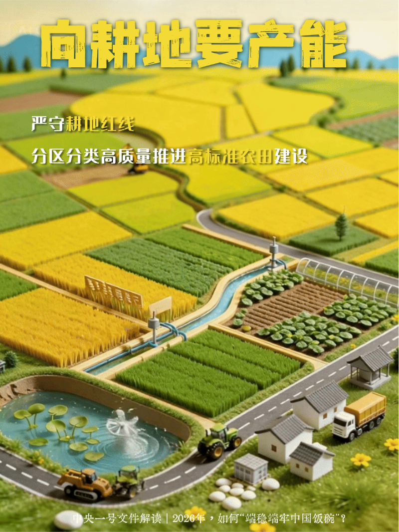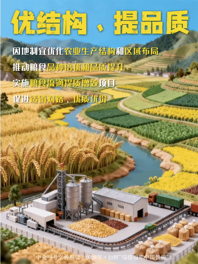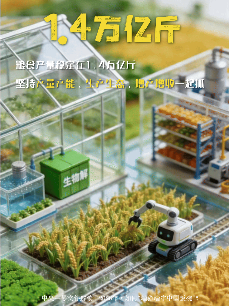 编者按:2月3日,《中共中央、国务院关于锚定农业农村现代化、扎实推进乡村全面振兴的意见》公布,这是党的十八大以来指导“三农”工作的第十四个中央一号文件。2026年如何端稳端牢中国饭碗,一组海报看个明白!