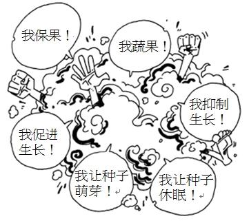 第四点,植物生长调节剂的作用是什么?非常广泛。有的促进种子萌芽,有的延长种子休眠;有的促进植物生长,有的抑制植物生长;有的保花保果,有的疏花疏果;有的促进果实成熟,有的起到保鲜作用。