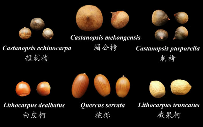 壳斗科不同大小的植物种子