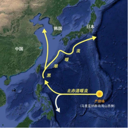 日本鳗的出生地和洋流方向 图片来源:中国鳗鱼网