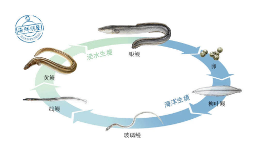 鳗鱼生活史 图片来源:青岛市海洋生态研究会